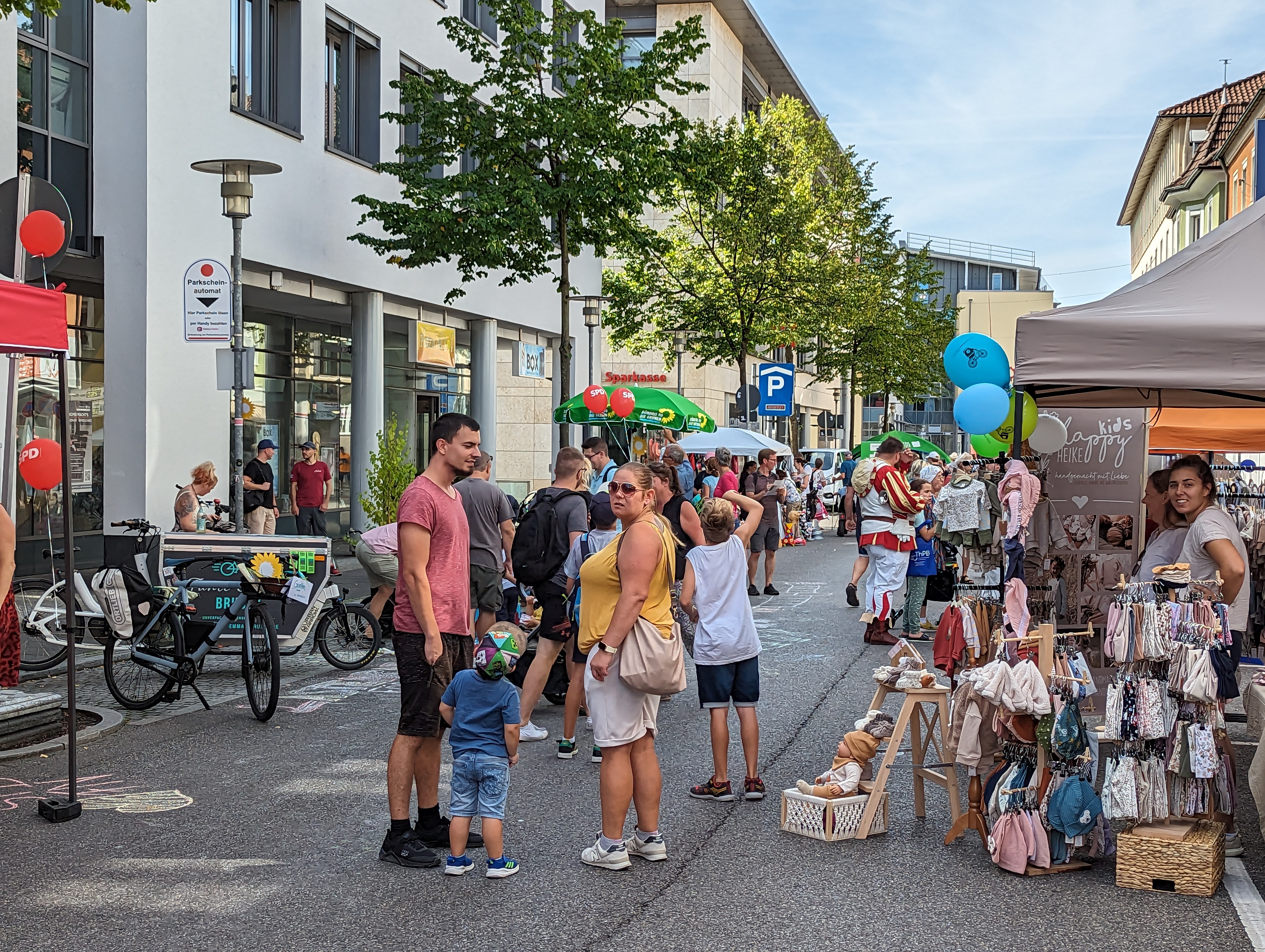 • In der Gymnasialstraße in Bad Kreuznach zeigten viele beteiligten Initiativen zum Park(ing) Day, wieeine Straße grüner, hitzeresistenter und sicherer für Radfahrende gestaltet werden kann. Aus Parkplätzen wurden Plätze mit bunten Aktionen, Kinderspielen sowie Essen und Trinken, begleitet von Musik.