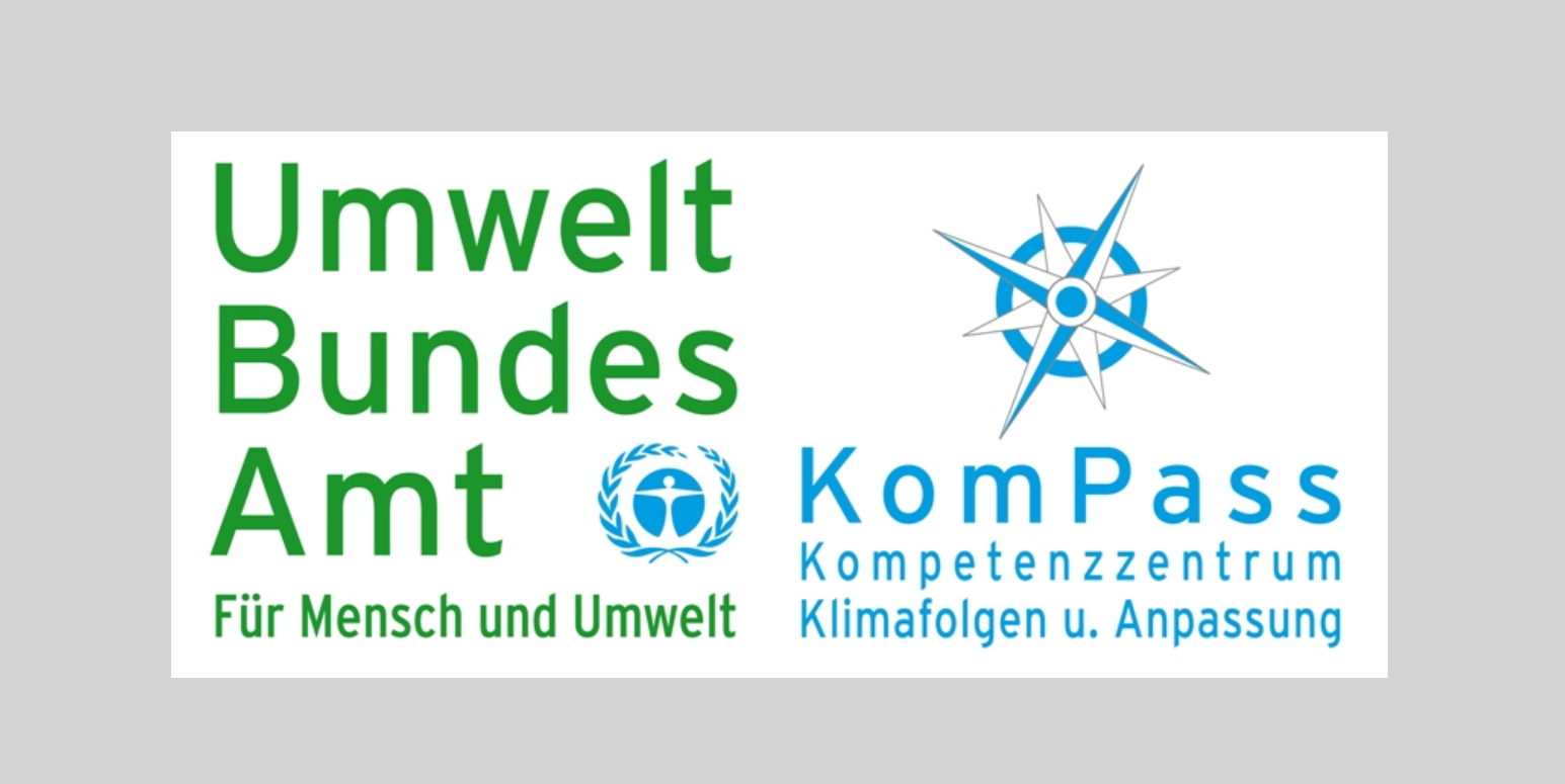 Logo aus einem grünen Schriftzug "Umweltbundesamt: Für Mensch und Umwelt" und einem blauen "KomPass: Kompetenzzentrum Klimafolgen u. Anpassung" Logo des Kompetenzzentrums für Klimafolgen und Anpassung (KomPass) von 2006