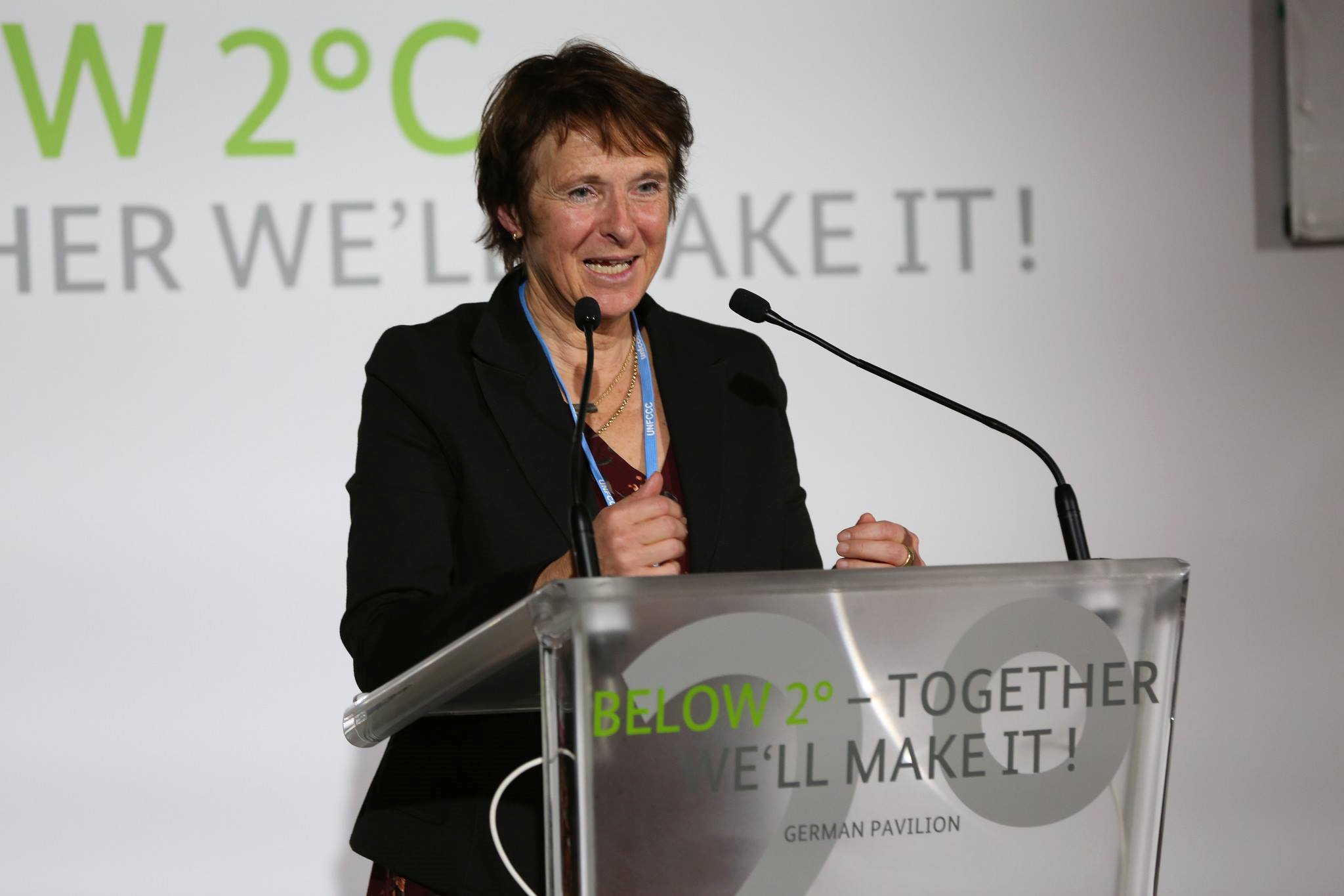UBA-Präsidentin Maria Krautzberger spricht im Deutschen Pavillon der Weltklimakonferenz in Paris. Quelle: BMUB