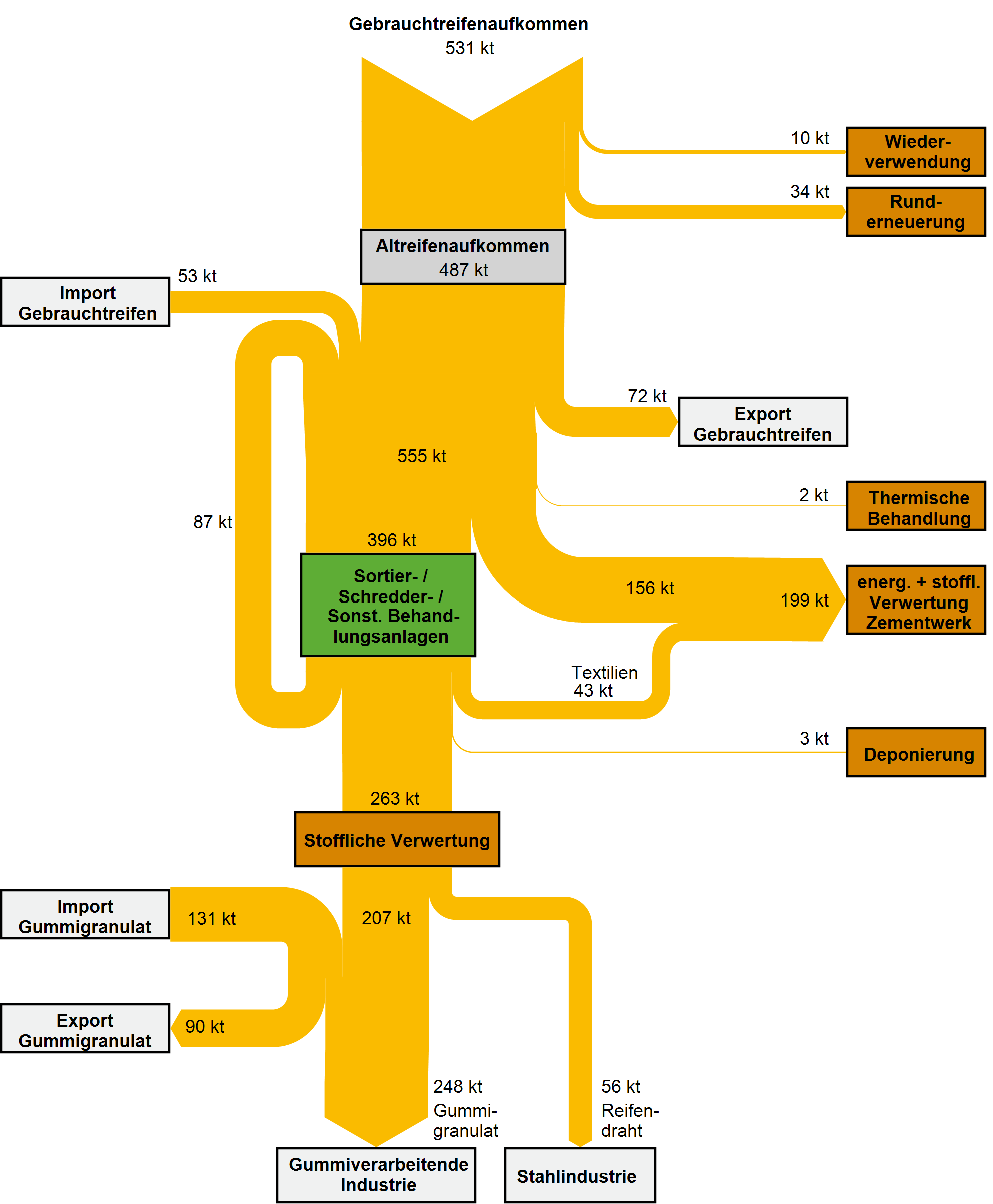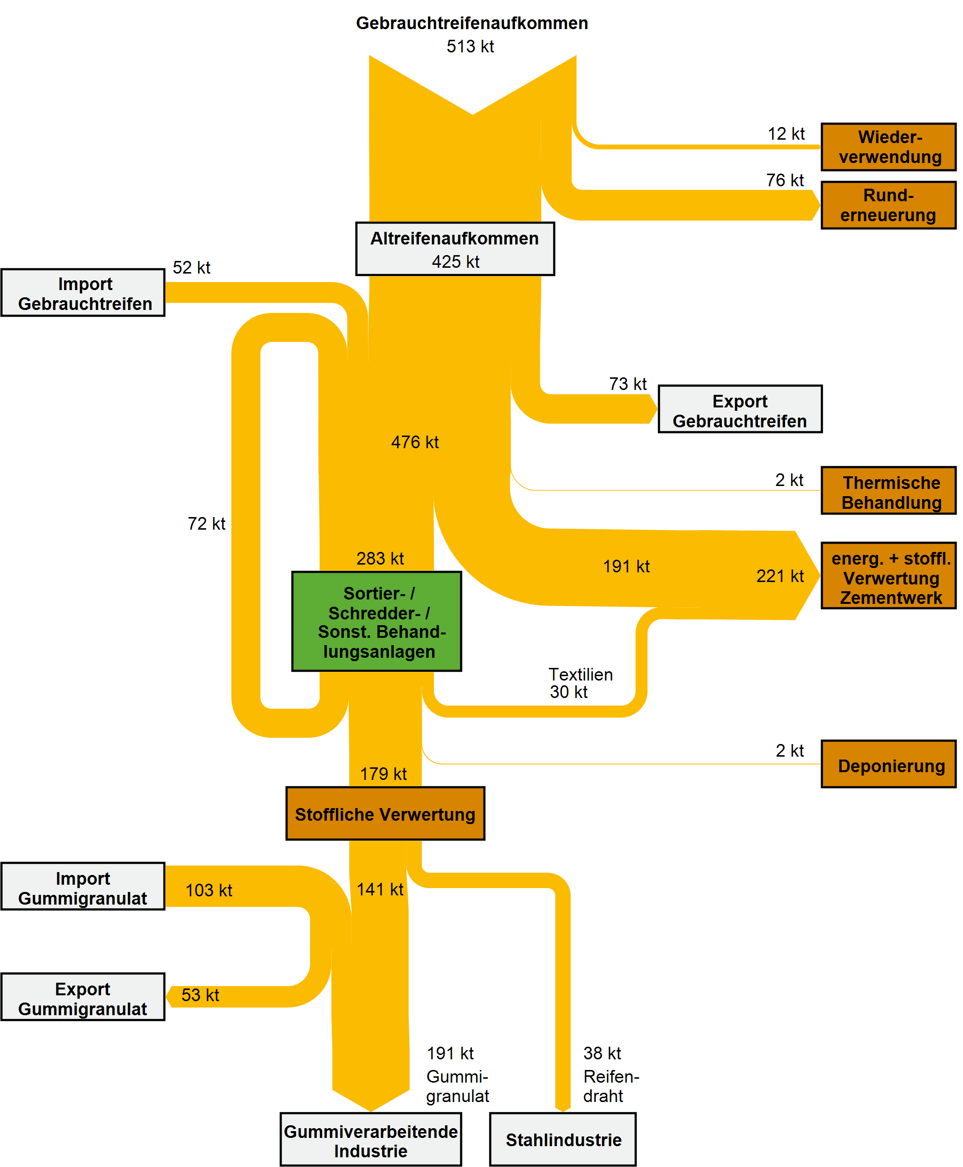 Abbildung 1: Stoffströme Altreifen in Deutschland 2014 Quelle: Umweltbundesamt