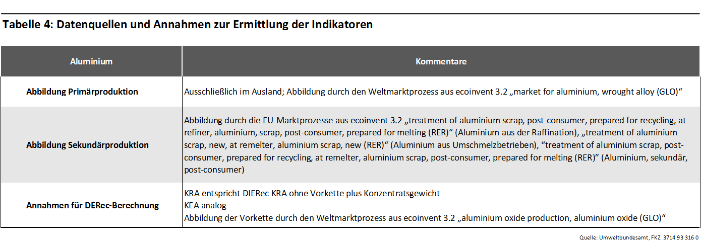 Datenquellen und Annahmen zur Ermittlung der Indikatoren