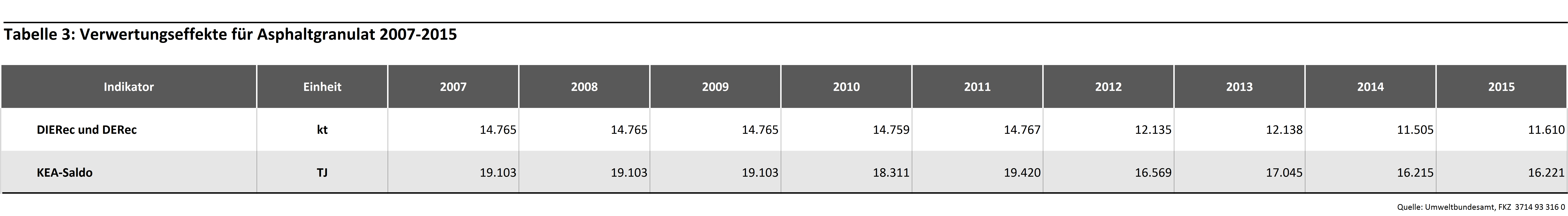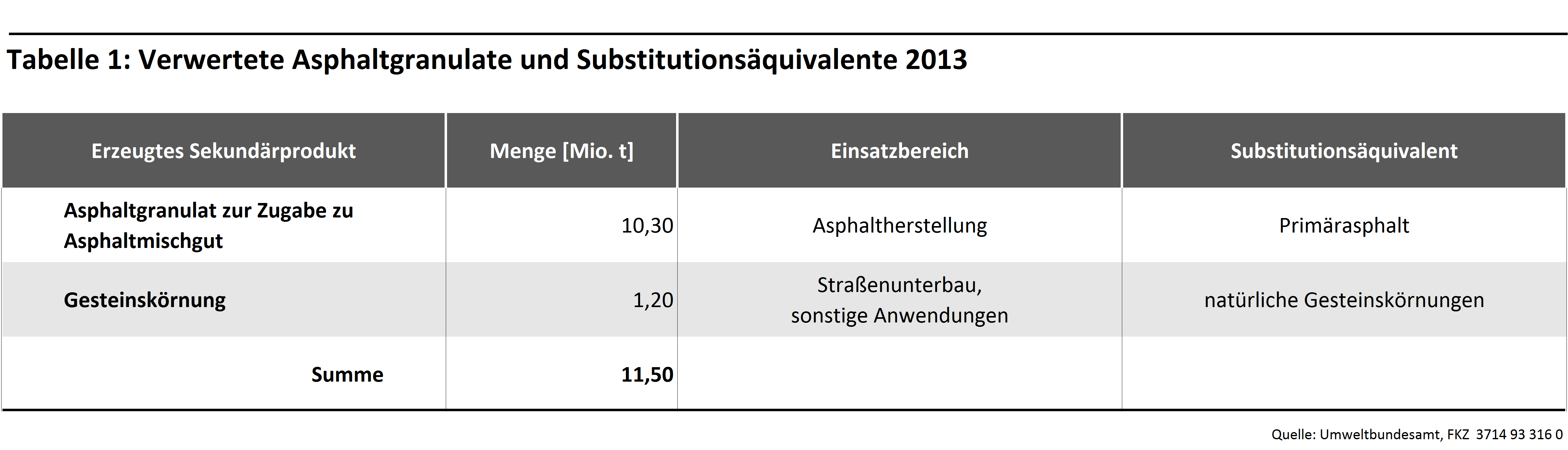 Bei einem Teil des anfallenden Asphaltgranulats erfolgt jedoch ein Downcycling im Straßenunterbau und ähnlichen Anwendungen. Hierbei wird es bei der Herstellung von Schichten ohne Bindemittel, Tragschichten mit hydraulischen Bindemitteln oder bitumengebundenen Tragschichten in Kaltaufbereitung verwendet.