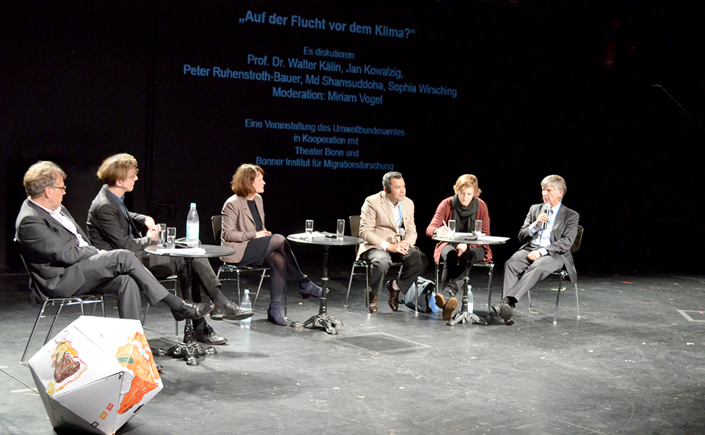Wie rüsten sich vulnerable Staaten gegen Klimarisiken? Wie können Menschen vor Klimaflucht bewahrt werden? Was passiert mit den Menschen, wenn sie ihre Heimat verlieren, ihrer Lebensgrundlagen beraubt werden? Welche Verantwortung tragen wir? Und was hieße es – nach dem Philosophen Vilem Flusser – „Wohnung zu beziehen in der Heimatlosigkeit“? Mit einer performativen-diskursiven Veranstaltung will das Umweltbundesamt in Kooperation mit dem Bonner Institut für Migrationsforschung und Interkulturelles Lernen (BIM)  e.V. und dem Theater Bonn die breite Öffentlichkeit während des Klimagipfels an ein komplexes Thema der internationalen Klimadiplomatie heranführen.