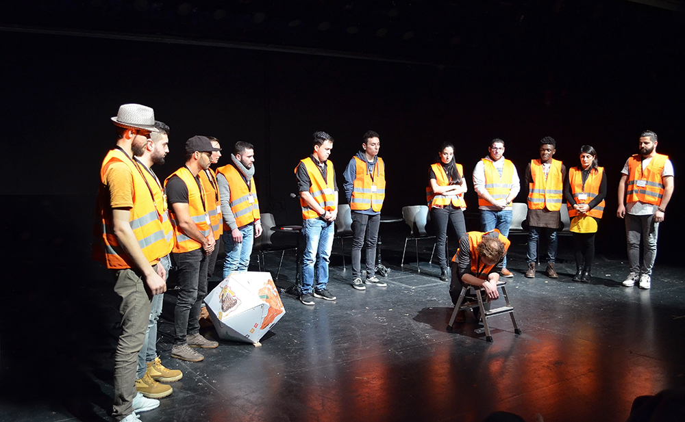 Mit: Issa Al Favaj, Bashar Al Nahhas, Omar Alzoubi, Oukba Diab, Hiba El Nagar, Zeynep Haemakers (Theaterpädagogin),  Mostafa Hossaini, Mohammed Kalash, Bashar Omar, Ward Shahda, Malek Shaheen, Samuel Tareke, Melchi Vepouyoum