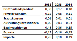 Absolute Abweichung zwischen den Szenarien mit und ohne Anpassung in Mrd. Euro