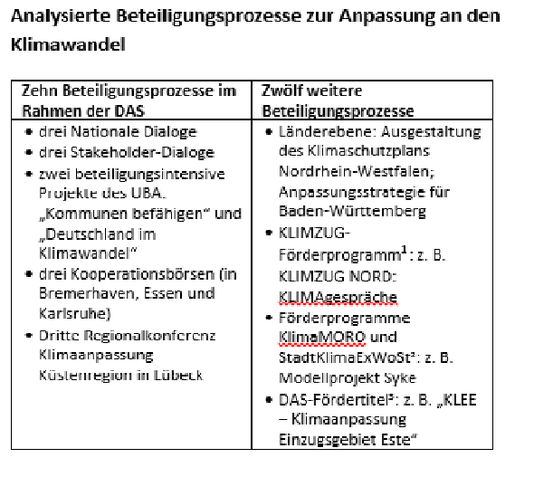 Analysierte Beteiligungsprozesse zur Anpassung an den Klimawandel