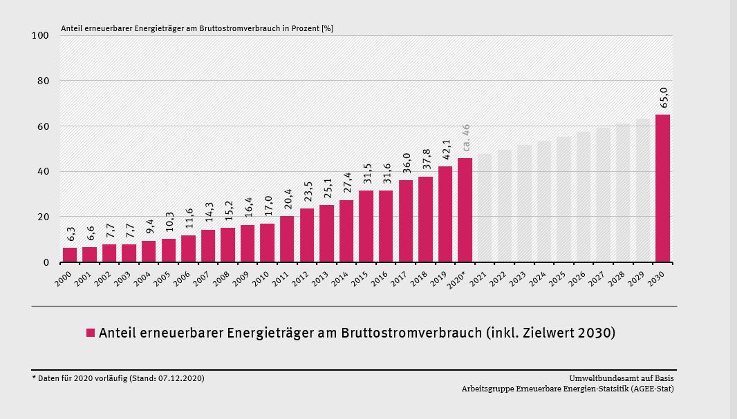 Anteil Erneuerbarer Energien am Bruttostromverbrauch 2020