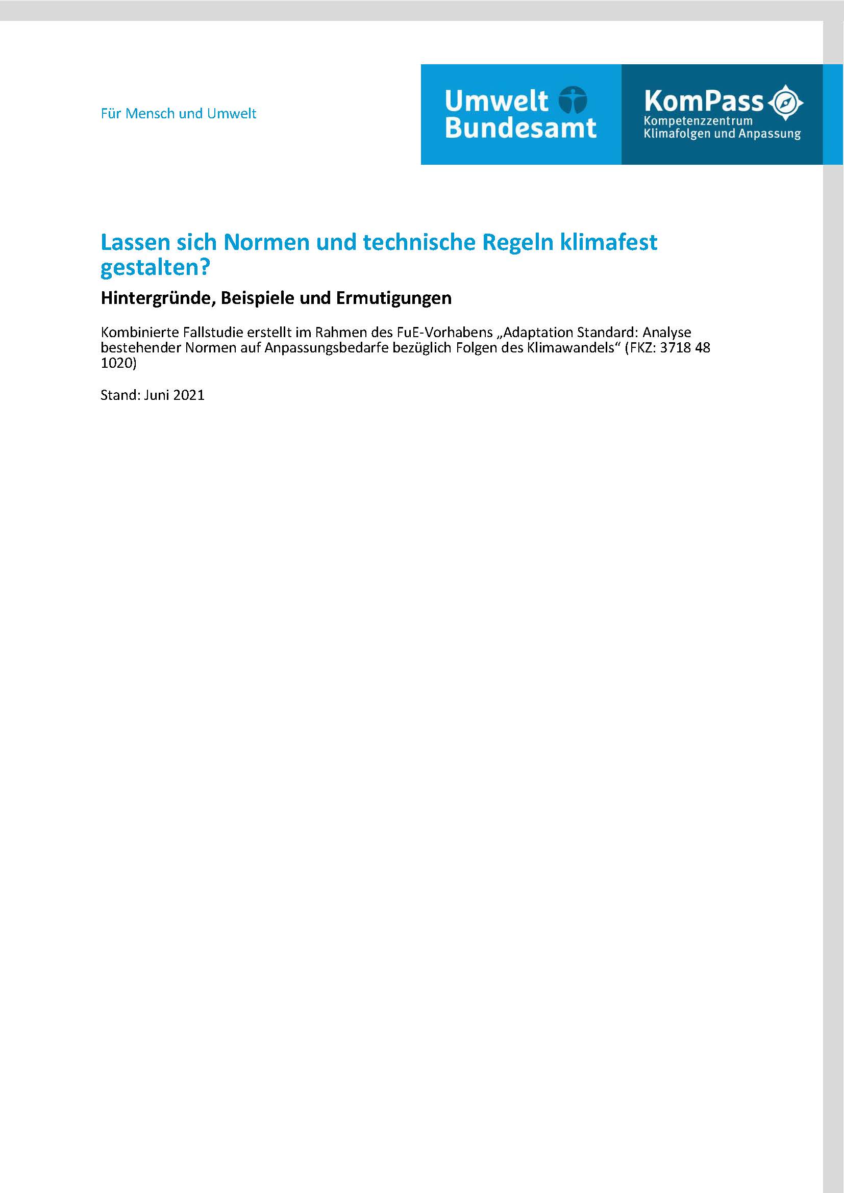 Cover Adaptation Standard: Analyse bestehender Normen auf Anpassungsbedarfe bezüglich Folgen des Kli