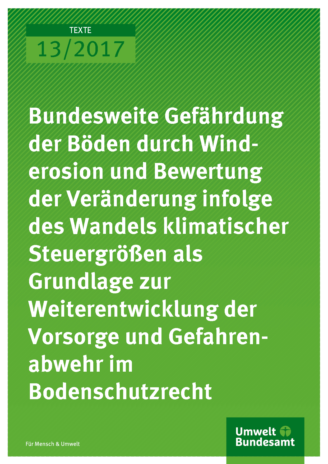 Bundesweite Gefährdung der Böden durch Winderosion und Bewertung der Veränderung infolge des Wandels klimatischer Steuergrößen als Grundlage zur Weiterentwicklung der Vorsorge und Gefahrenabwehr im Bodenschutzrecht