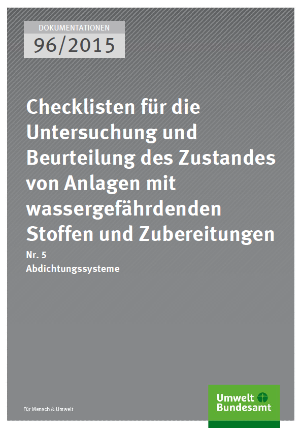 Cover Dokumentationen 96/2015 Checklisten für die Untersuchung und Beurteilung des Zustandes von Anlagen mit wassergefährdenden Stoffen und Zubereitungen