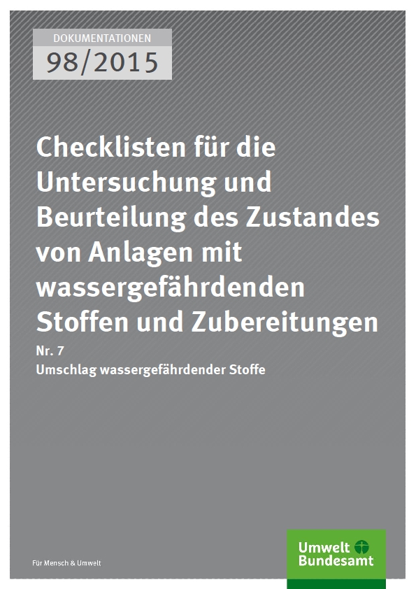 Checklisten für die Untersuchung und Beurteilung des Zustandes von Anlagen mit wassergefährdenden Stoffen und Zubereitungen