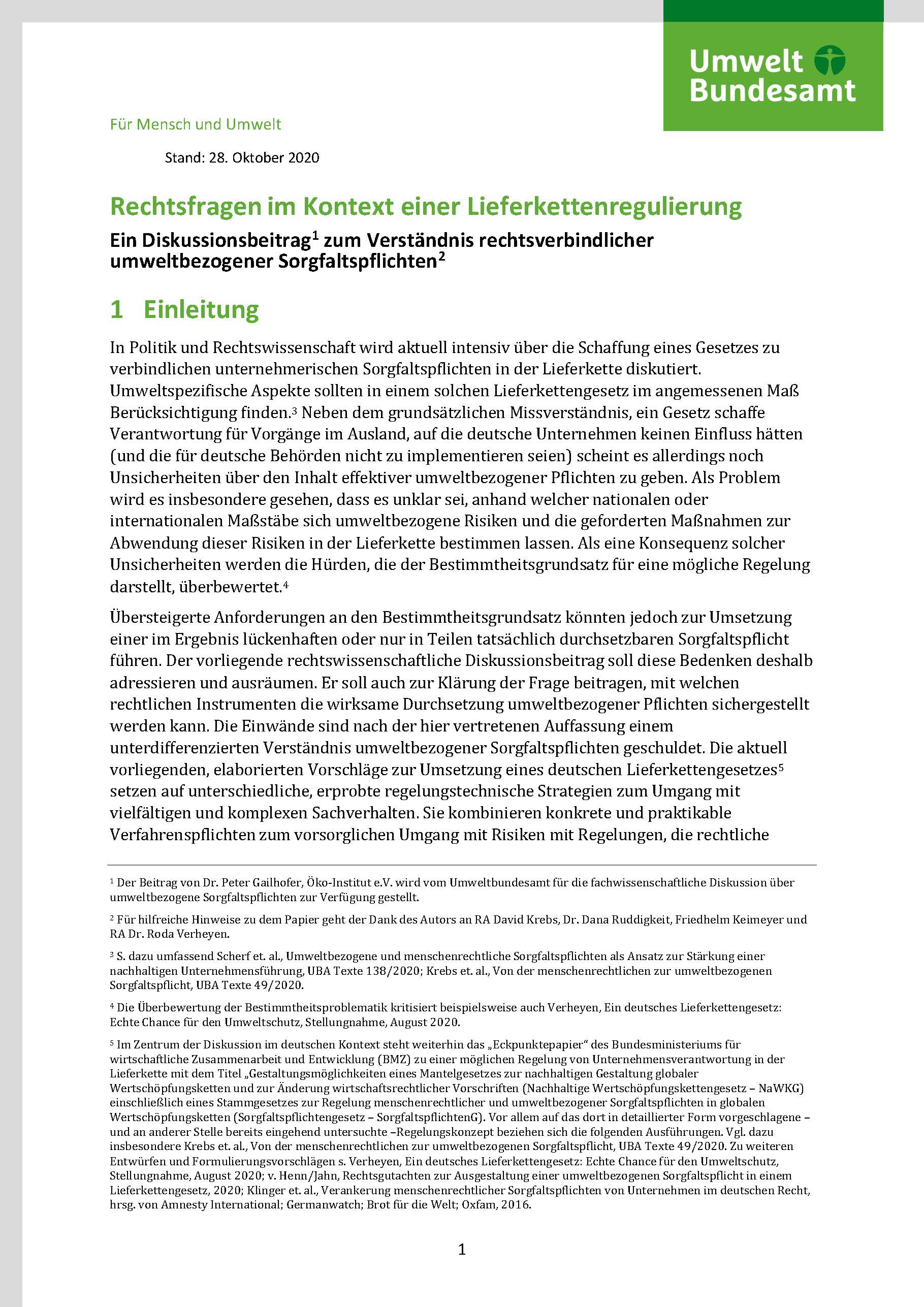 Rechtsfragen im Kontext einer Lieferkettenregulierung