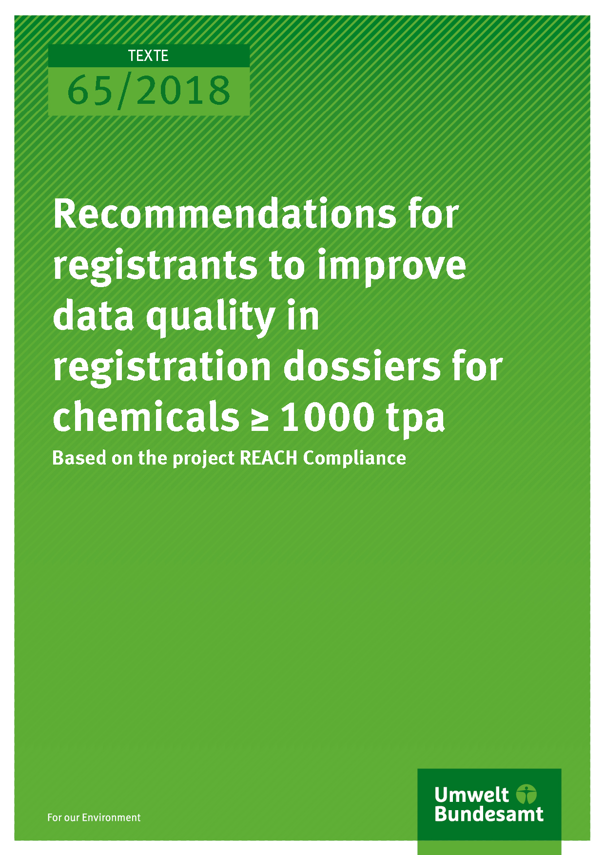 Recommendations for registrants to improve data quality in registration dossiers for chemicals ≥ 1000 tpa