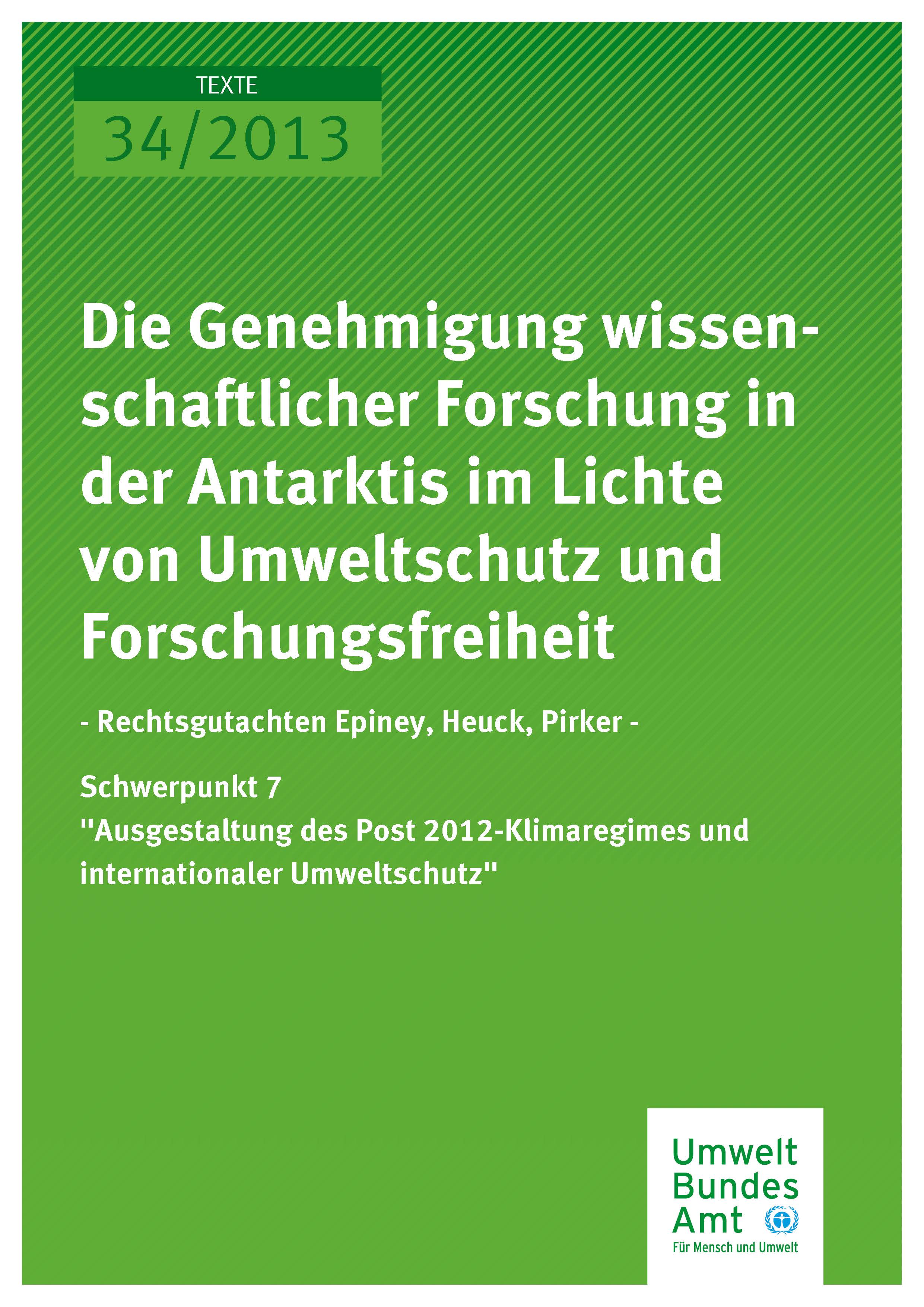 Die Genehmigung wissenschaftlicher Forschung in der Antarktis im Lichte von Umweltschutz und Forschungsfreiheit (Rechtsgutachten 1)