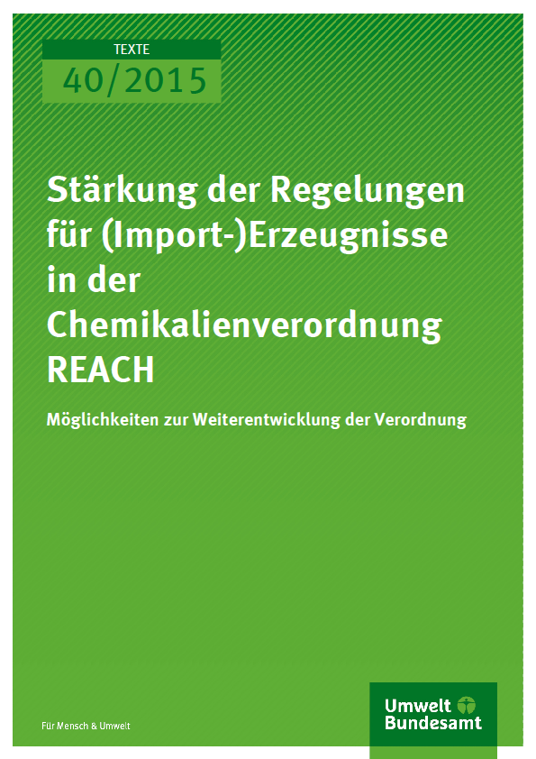 Cover Texte 40/2015 Stärkung der Regelungen für (Import-)Erzeugnisse in der Chemikalienverordnung REACH