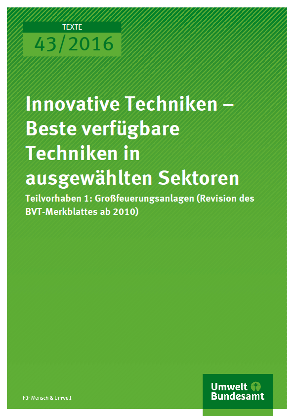 Cover Texte 43/2016 Innovative Techniken – Beste verfügbare Technik in ausgewählten Sektoren