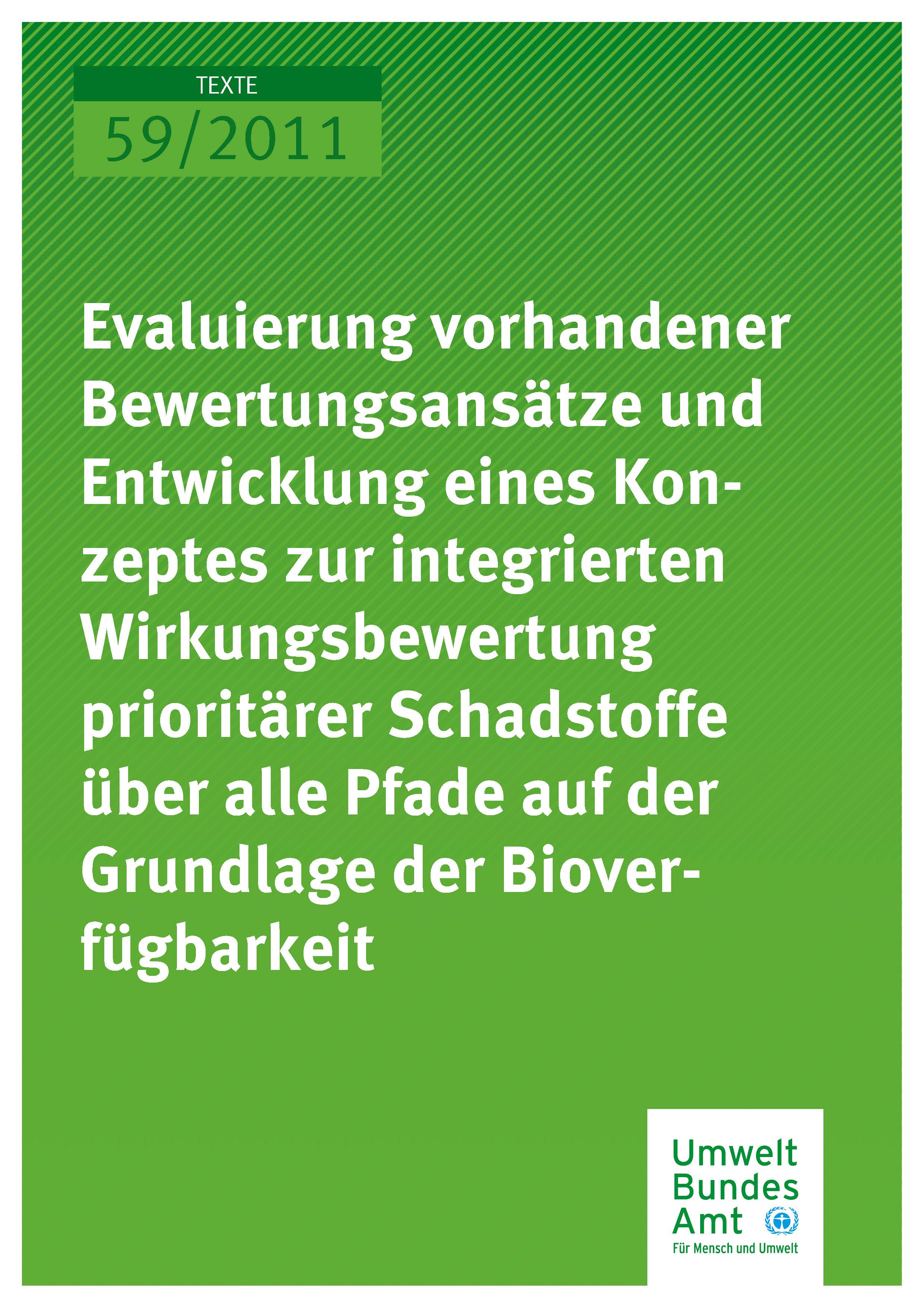 Publikation:Evaluierung vorhandener Bewertungsansätze und Entwicklung eines Konzeptes zur integrierten Wirkungsbewertung prioritärer Schadstoffe über alle Pfade auf der Grundlage der Bioverfügbarkeit