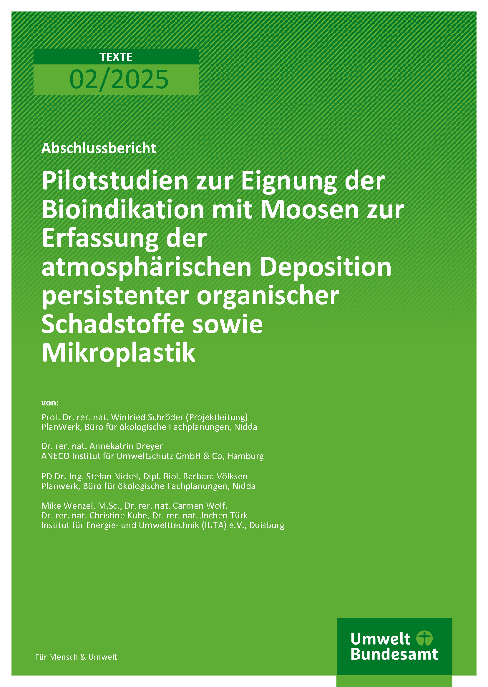 Pilotstudien zur Eignung der Bioindikation mit Moosen zur Erfassung der atmosphärischen Deposition persistenter organischer Schadstoffe sowie Mikroplastik