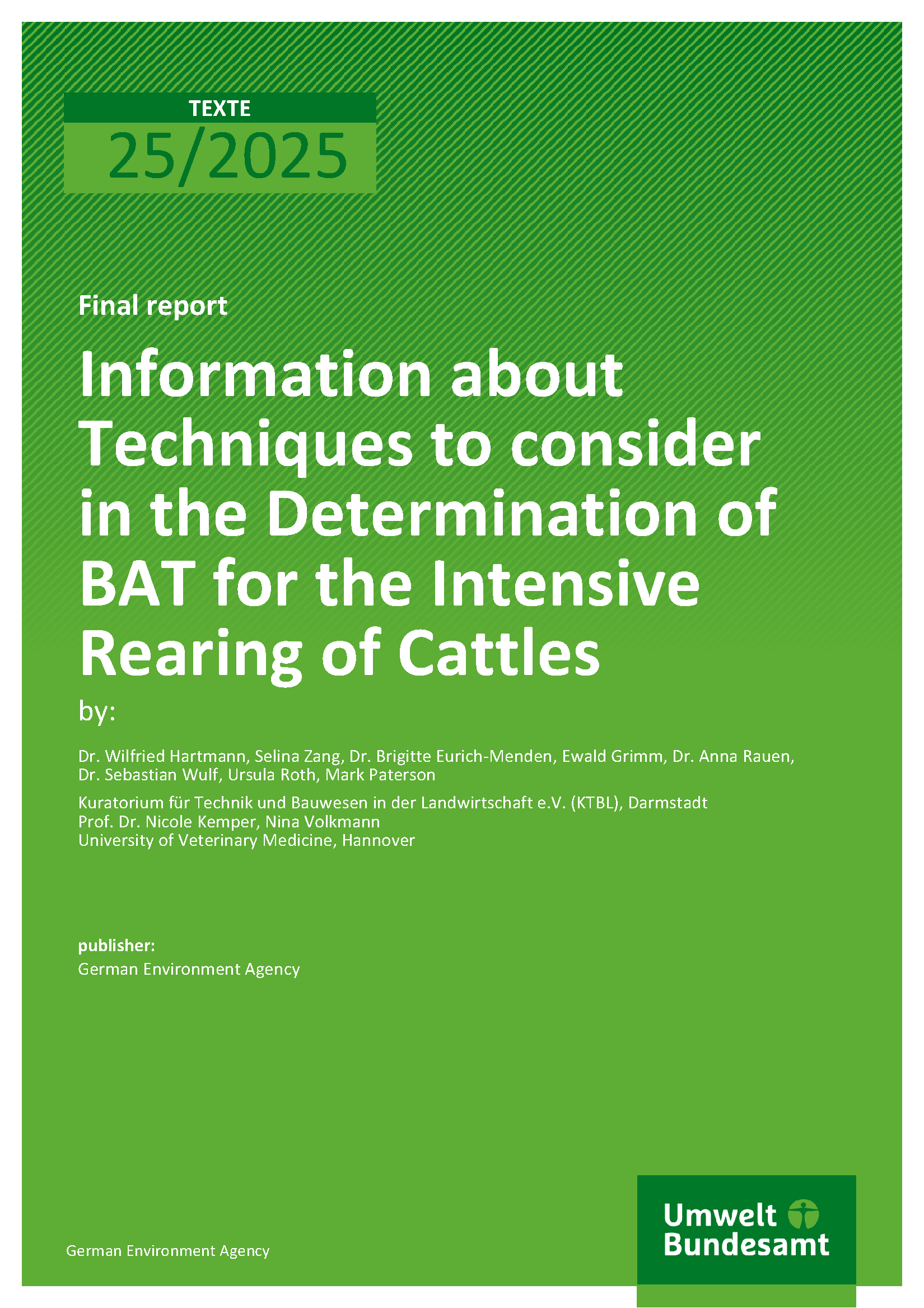 Information about Techniques to consider in the Determination of BAT for the Intensive Rearing of Cattles