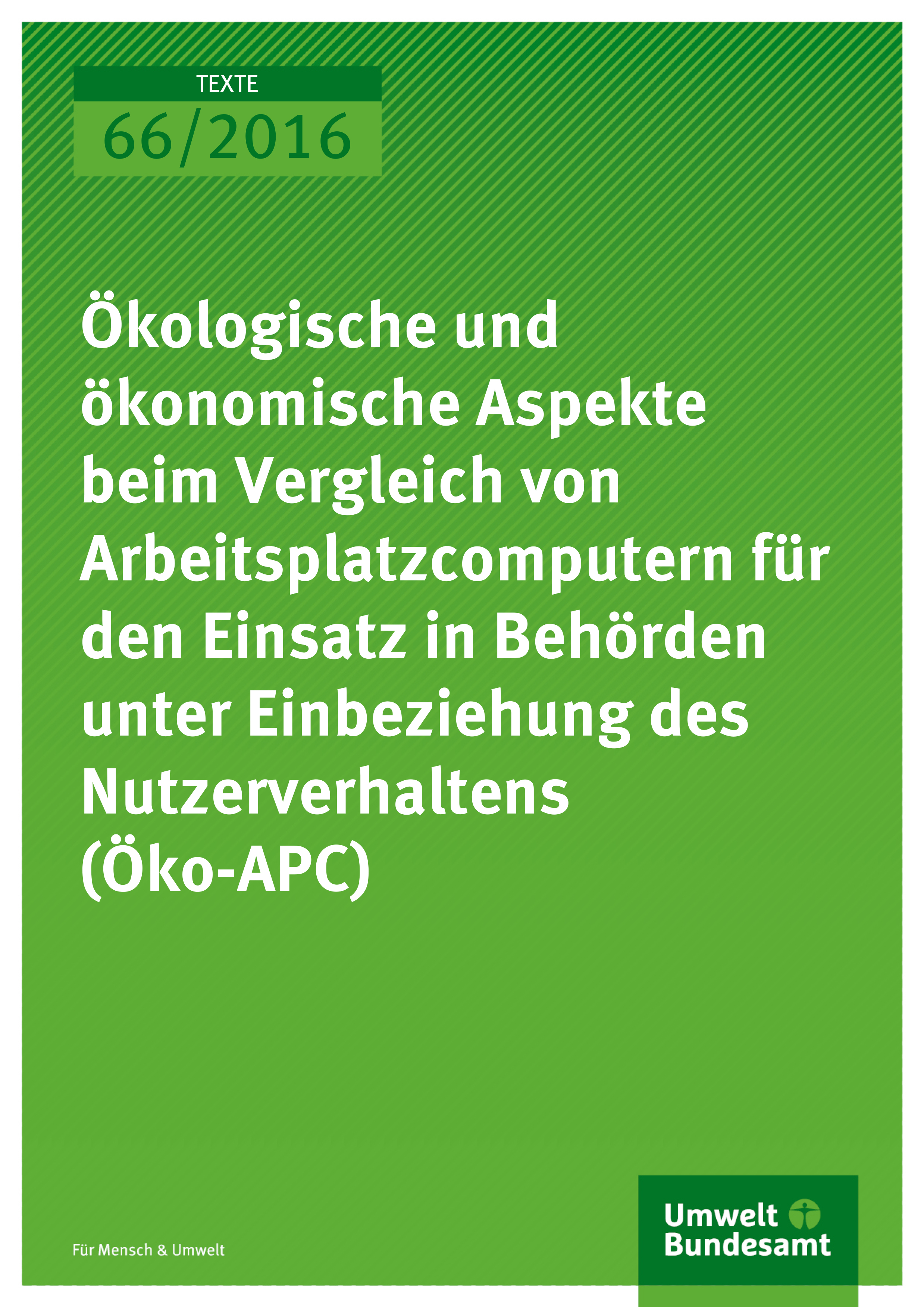 Ökologische und ökonomische Aspekte beim Vergleich von Arbeitsplatzcomputern für den Einsatz in Behörden unter Einbeziehung des Nutzerverhaltens (Öko-APC)