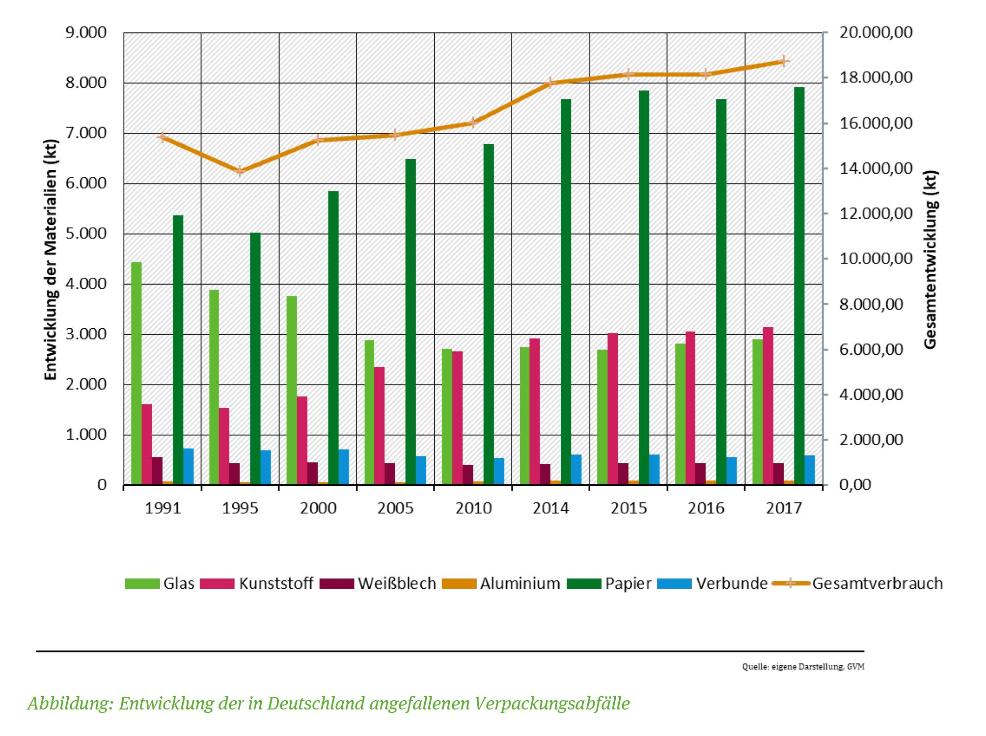 Entwicklung der in Deutschland anfallenen Verpackungsabfälle