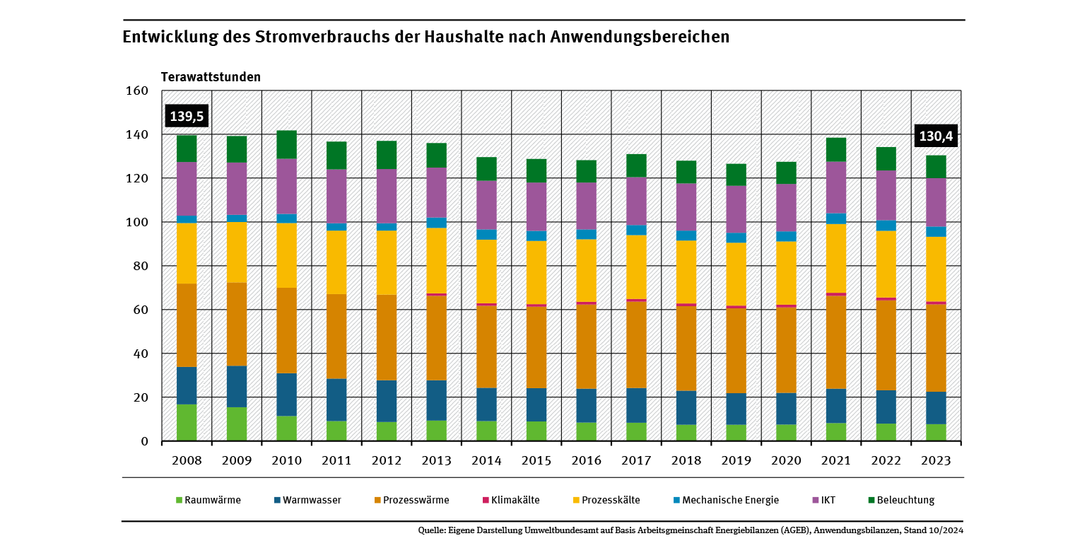 Entwicklung des Stromverbrauchs der Haushalte nach Anwendungsbereichen