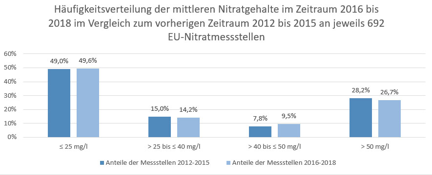 Häufigkeitsverteilung der mittleren Nitratgehalte im Zeitraum 2016 bis 2018