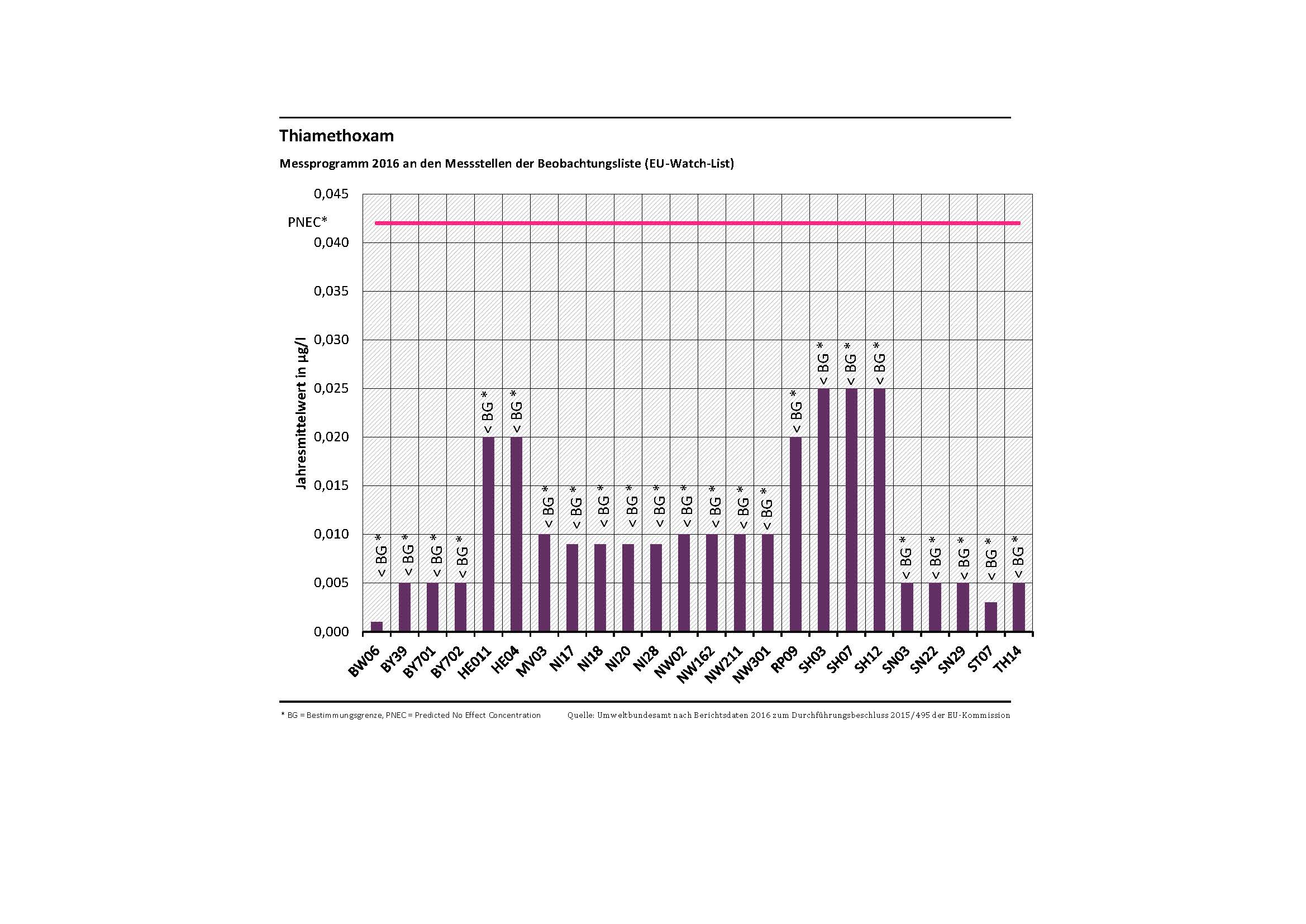 Jahresmittelwerte 2016 für Acetamiprid, Clothianidin, Imidacloprid, Thiacloprid und Thiamethoxam
