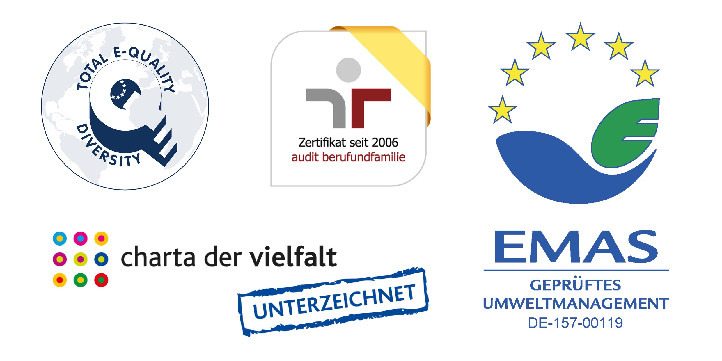 Logos Total E-Quality, Audit berufundfamilie, EMAS und Charta der Vielfalt