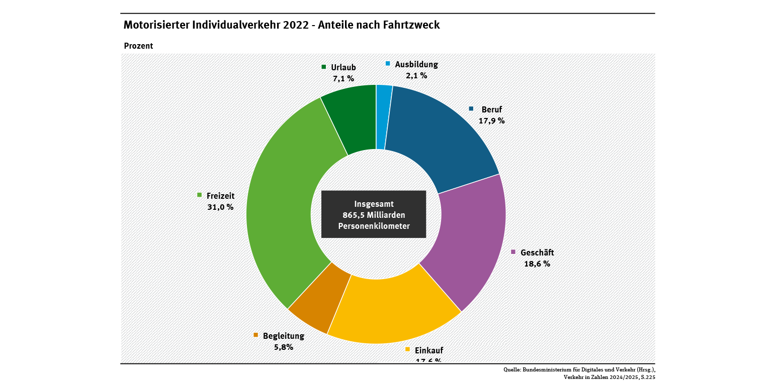 Motorisierter Individualverkehr 2022 – Anteile nach Fahrtzweck