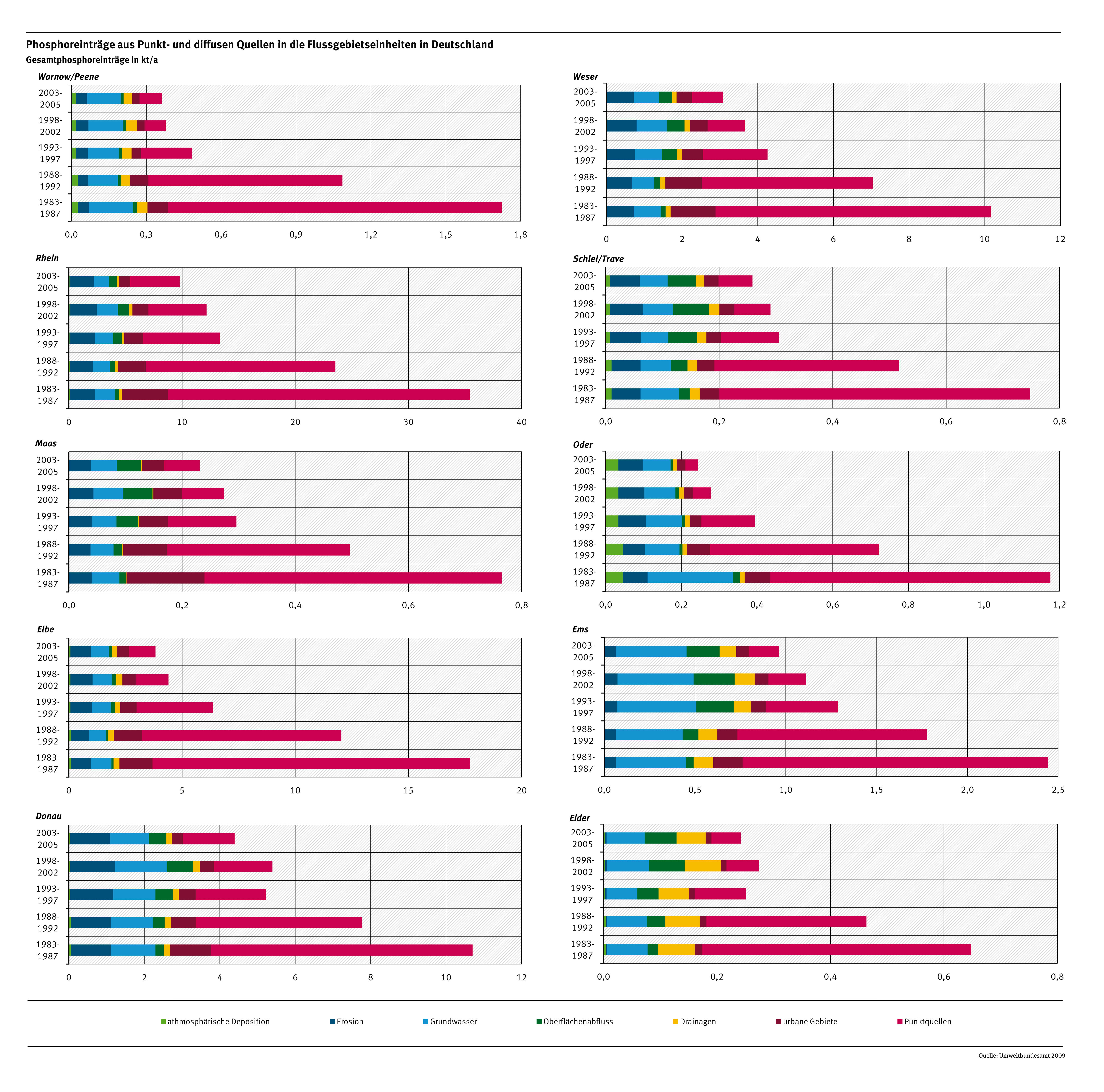 Phosphoreinträge aus Punkt- und diffusen Quellen in die Flussgebietseinheiten