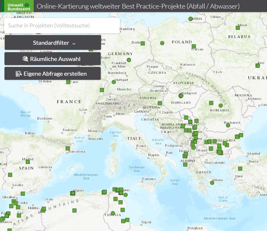 Screenshot Webseite "Online Kartierung weltweiter Best Practice-Projekte (Abfall/Abwasser)"
