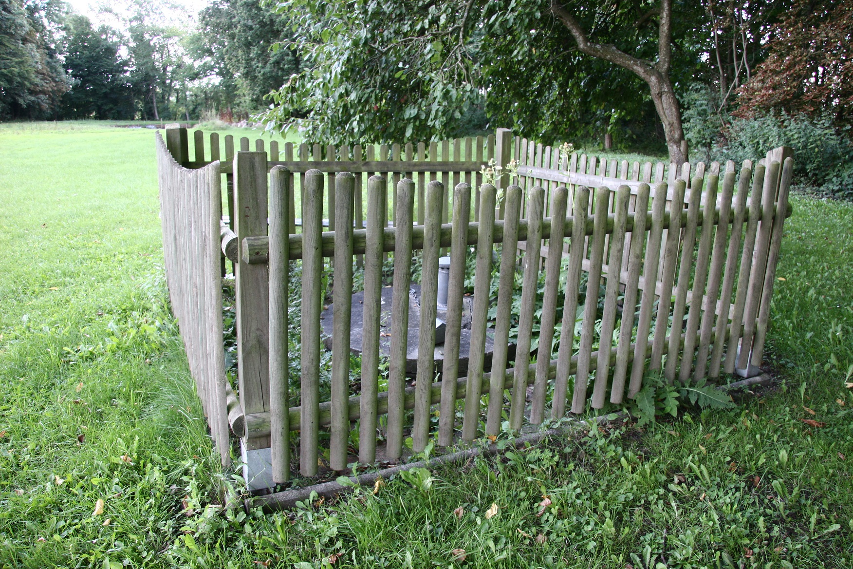 Umzäunter Brunnen zum Schutz vor Verunreinigungen des Trinkwassers.