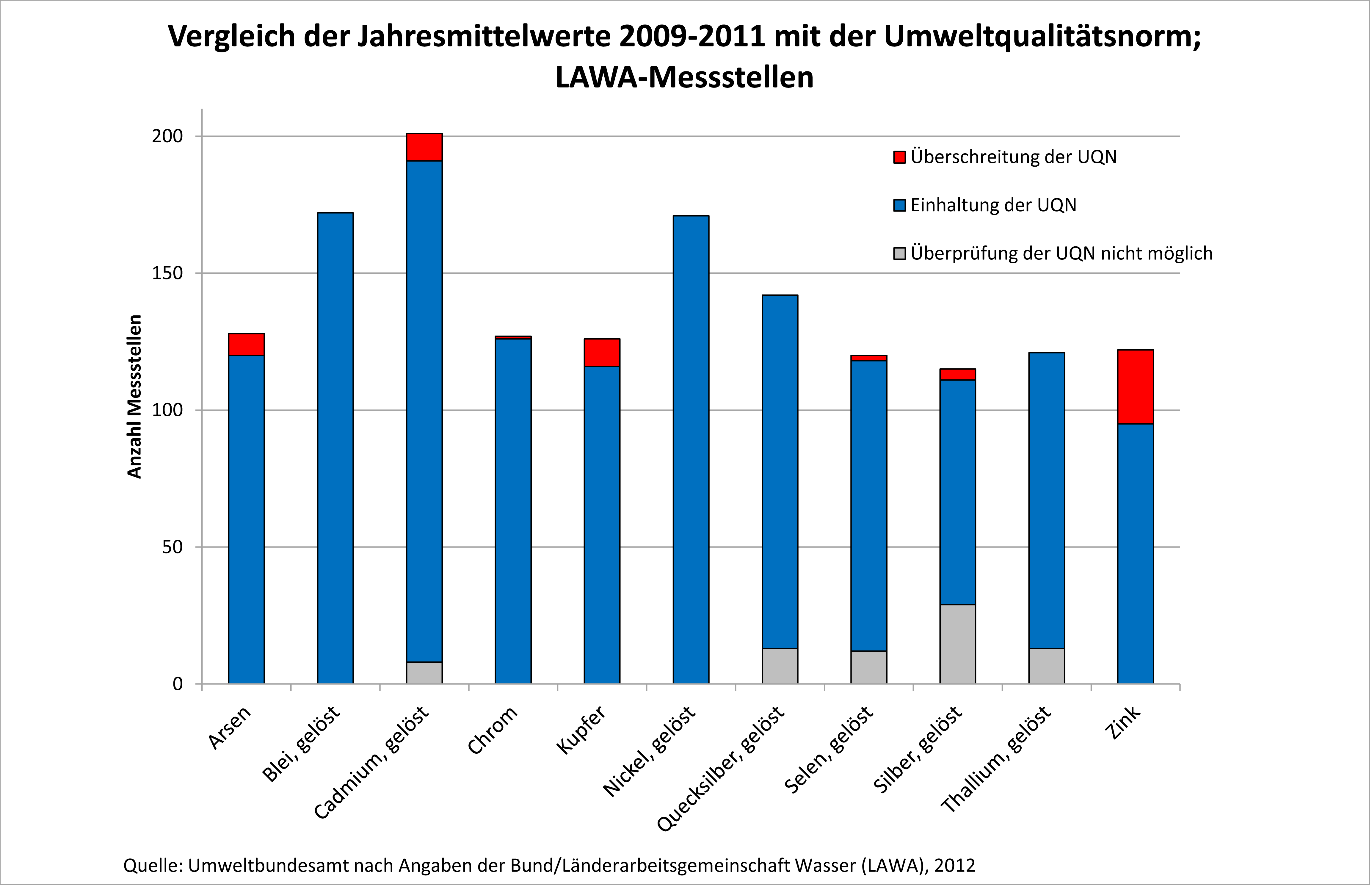 Vergleich der Jahresmittelwerte 2009 - 2011 mit der Umweltqualitätsnorm