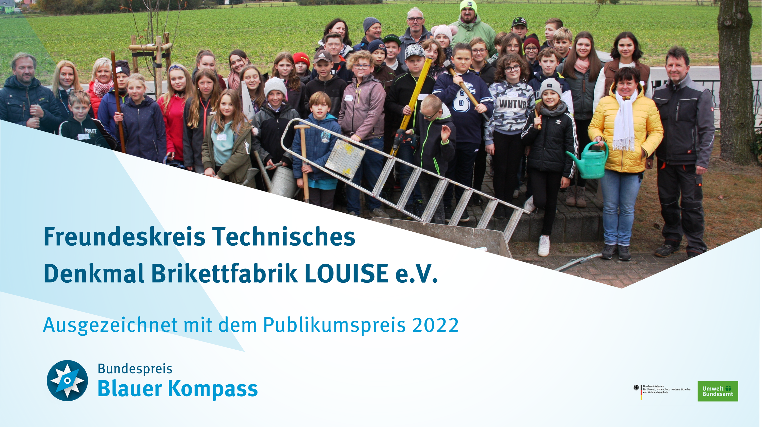 „Gewinner des Publikumspreises 2022" ist der Freundeskreis Technisches Denkmal Brikettfabrik LOUISE e.V. mit dem Projekt „Leuchtturm Louise – Mit kühlem Kopf in heißen Zeiten“!