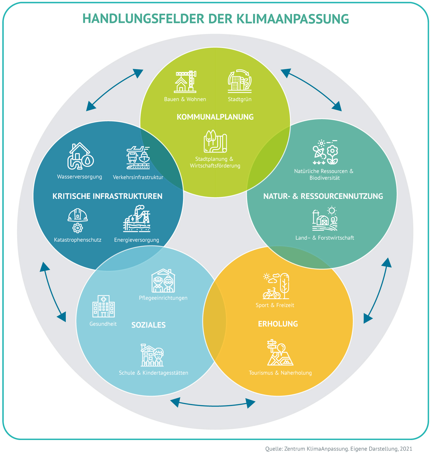 Ausgehend von der unterschiedlichen regionalen und lokalen Betroffenheit sind Klimaanpassungskonzepte und -maßnahmen erforderlich, die zielgenau auf die Bedürfnisse jeder Kommune oder Einrichtung zugeschnitten sind.