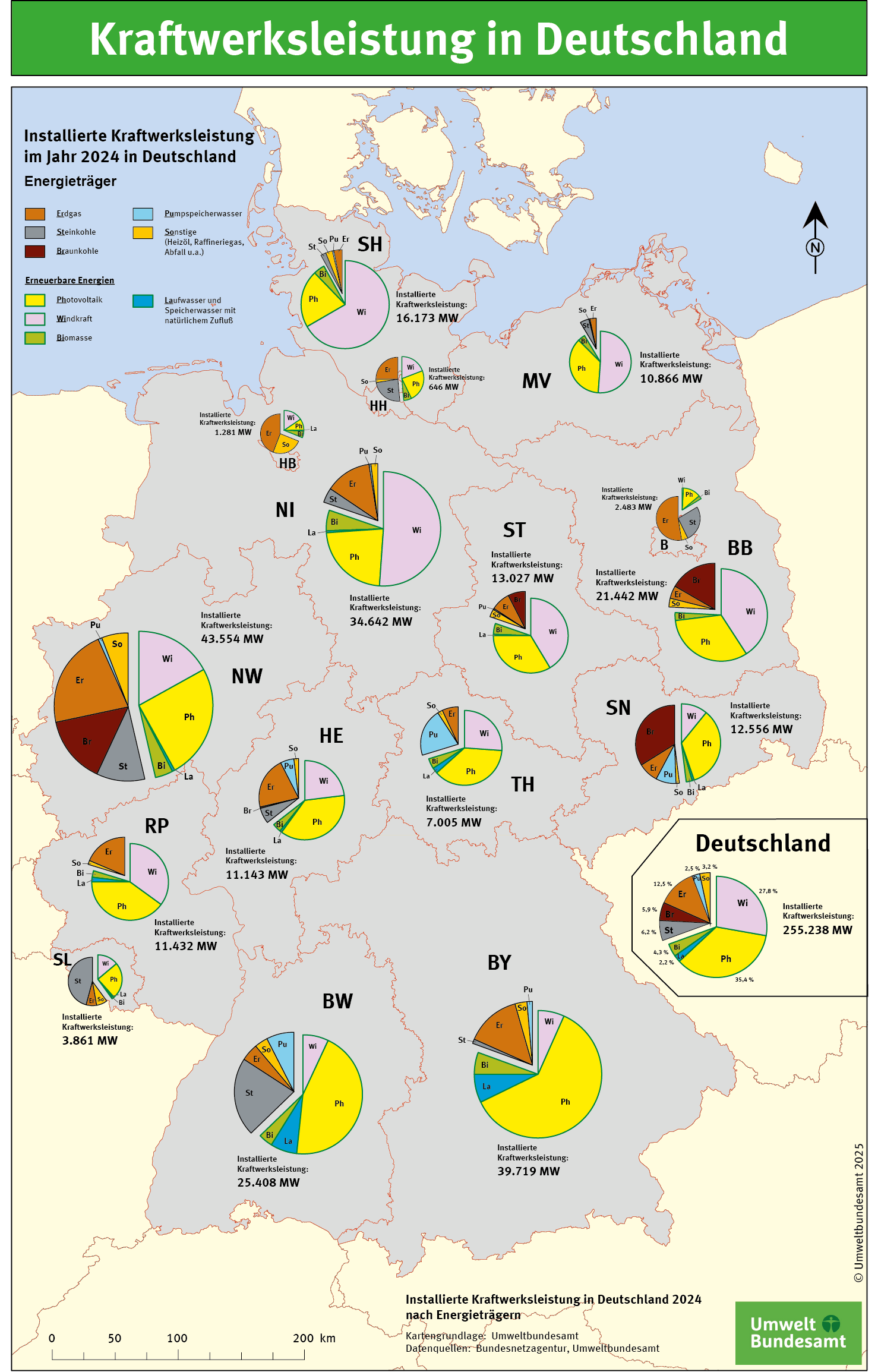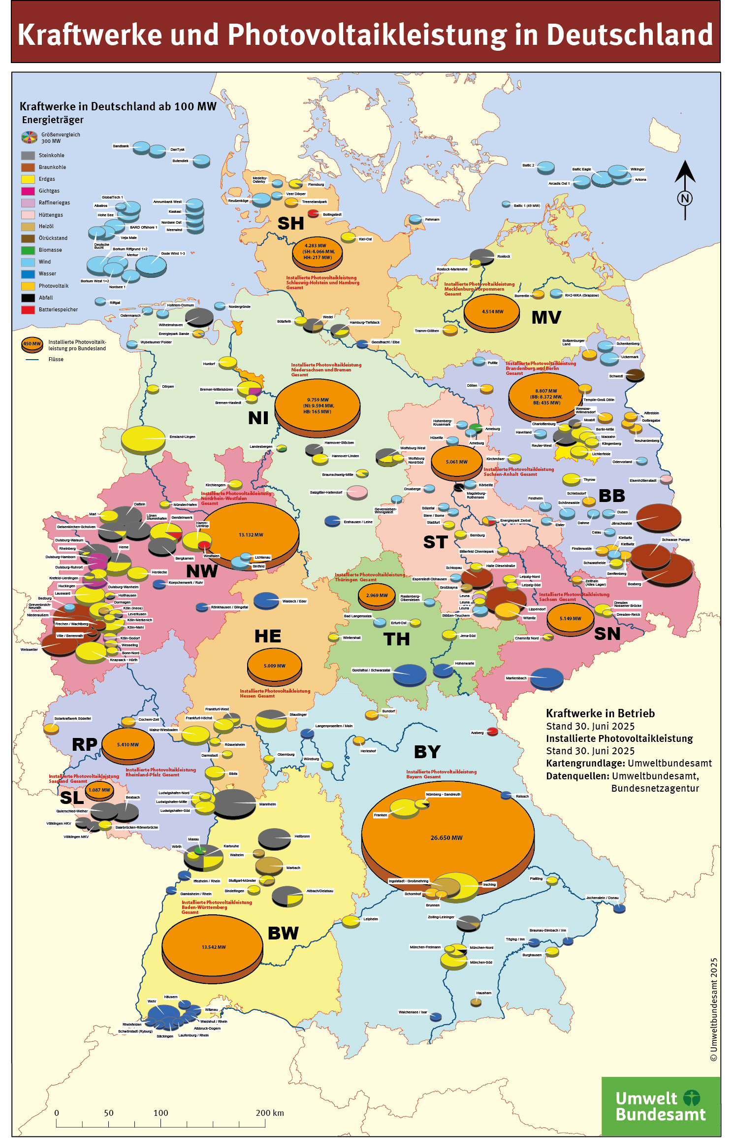 Karte Kraftwerke und Photovoltaikleistung in Deutschland, Stand Juni 2025