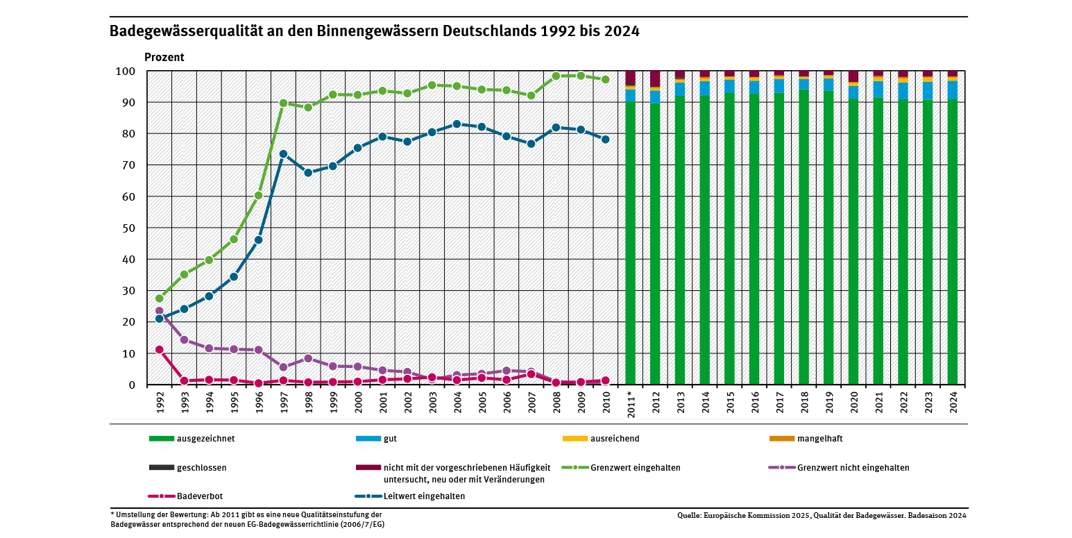 Qualität der Badegewässer von 1992 bis 2024