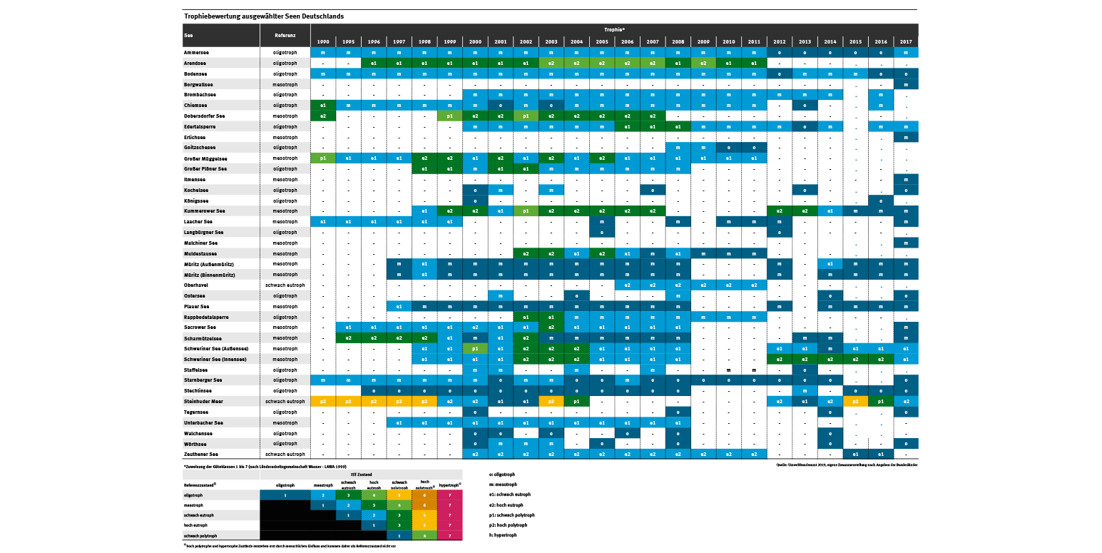Tab: Trophiebewertung ausgewählter Seen Deutschlands Quelle: UmweltbundesamtTabelle als PDF