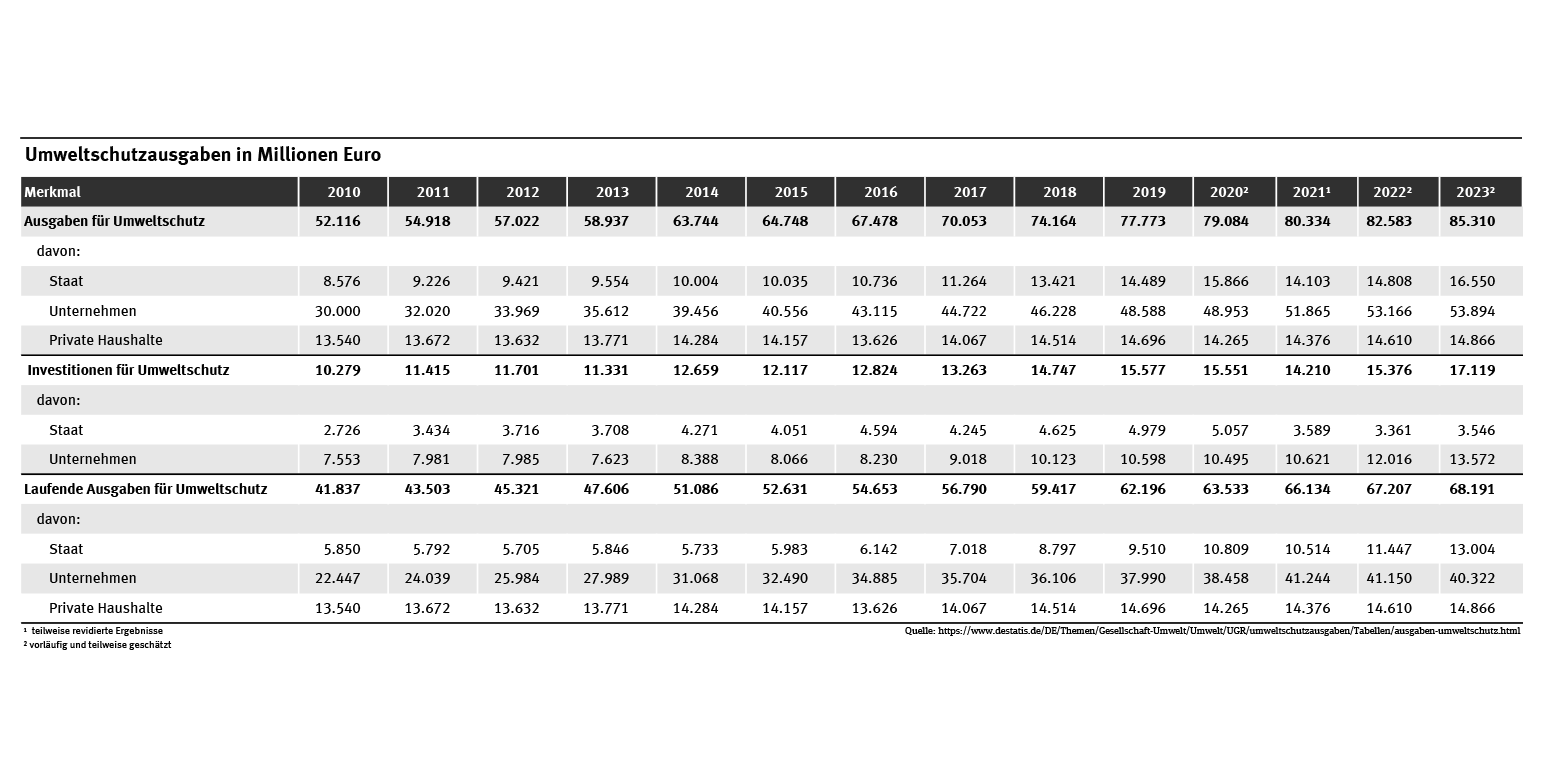 Umweltschutzausgaben nach Umweltbereichen im Jahr 2023