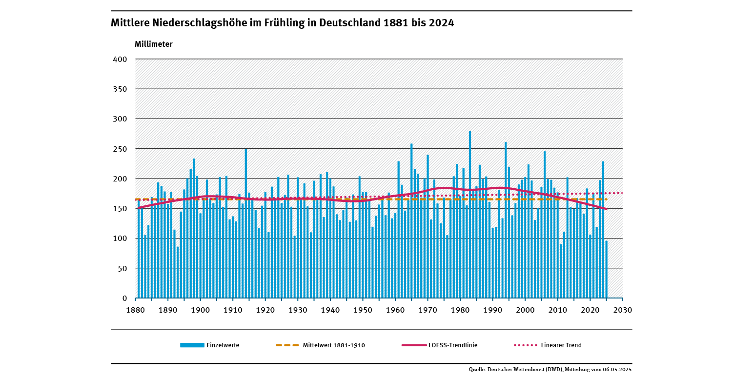 Mittlere Niederschlagshöhe im Frühling in Deutschland 1881 bis 2025