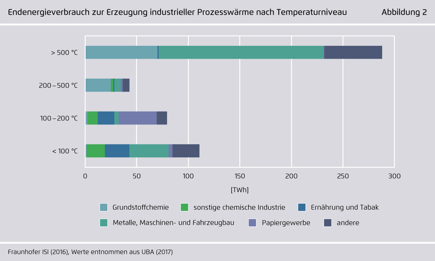 Aufteilung des Endenergiebedarfs von Prozesswärme je Temperaturbereich