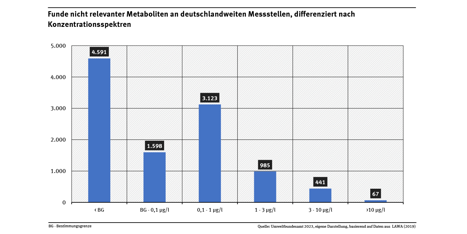 Funde nicht relevanter Metaboliten an deutschlandweiten Messstellen, differenziert nach Konzentratio