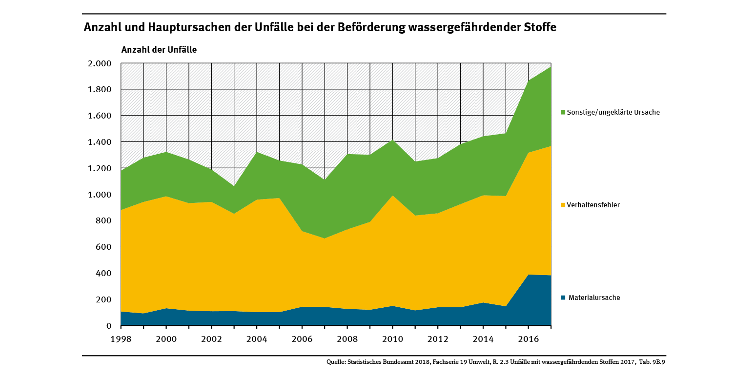 Anzahl und Hauptursachen der Unfälle bei der Beförderung wassergefährdender Stoffe