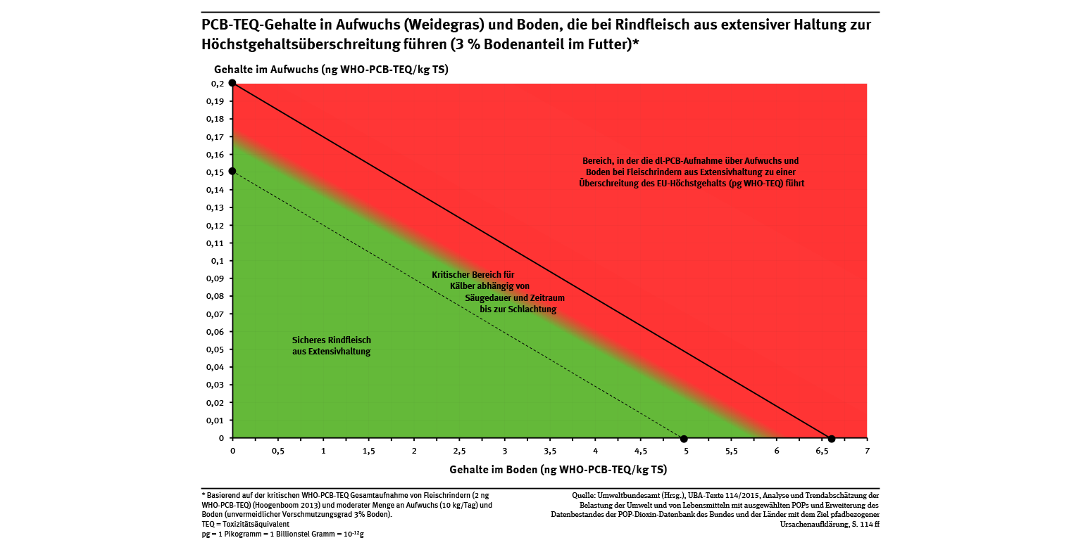 PCB-TEQ-Gehalte in Aufwuchs (Weidegras) und Boden, die bei Rindfleisch aus extensiver Haltung ...