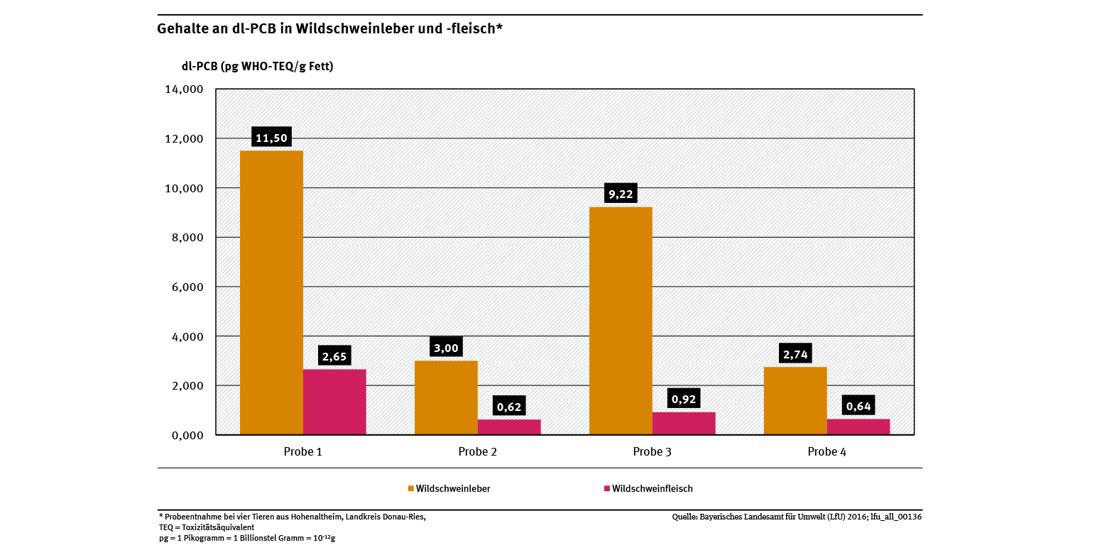 Gehalte an dl-PCB in Wildschweinleber und -fleisch