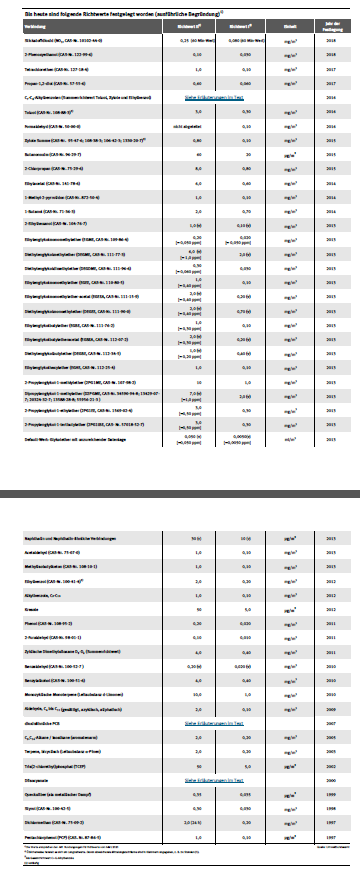 Die Richtwerte I und II für Stoffe der Innenraumlauft