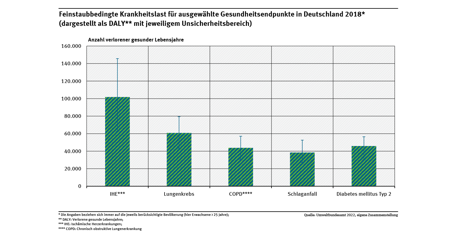 Feinstaubbedingte DALYs für alle Erkrankungen in 2018