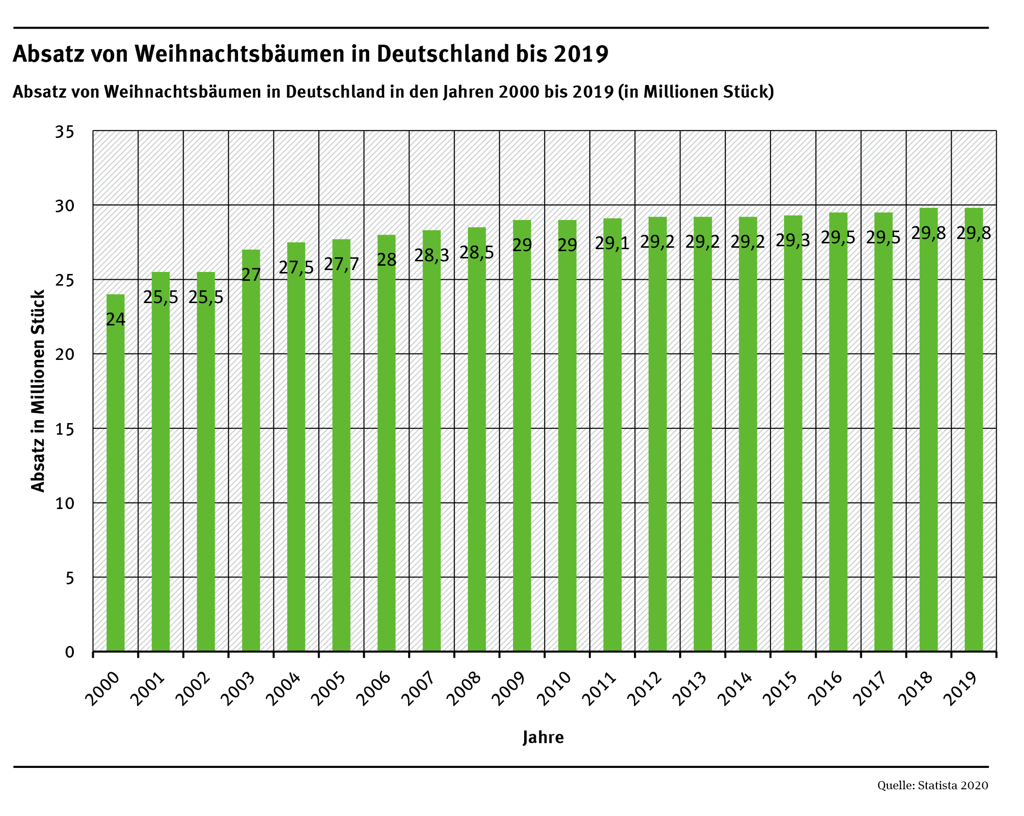 Absatz von Weihnachtsbäumen in Deutschland bis 2019