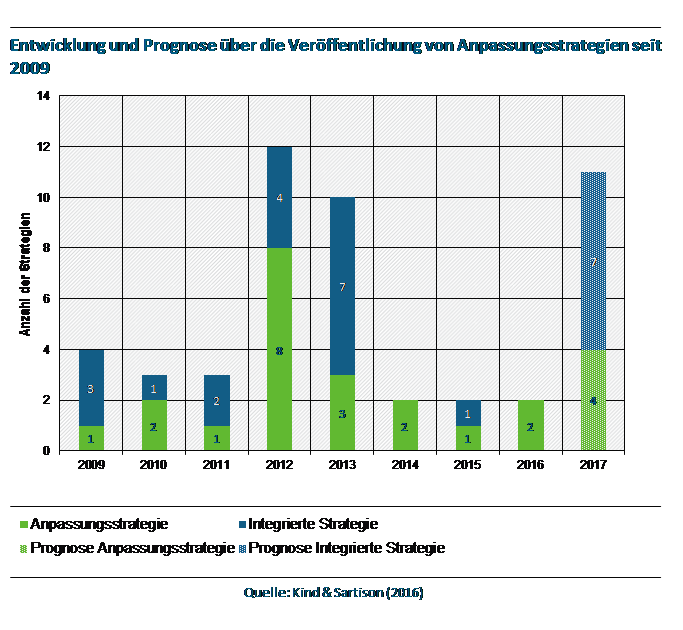 Veröffentlichte Anpassungsstrategien und integrierte Strategien seit 2009 mit Prognose für 2017
